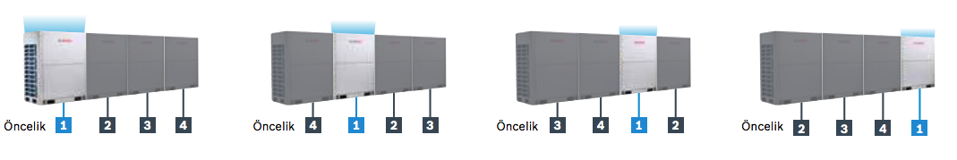 Birlikte çalışan dış ünite gruplarında, dış ünitelerden biri master ünite olarak çalışır ve master ünite belirli aralıklarla değişerek diğer tüm dış ünitelerin çalışma ömrünün eşit olarak dağıtılmasını sağlar. Bu sayede, sistemin çalışma ömrü önemli ölçüde artar.